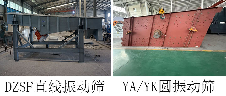大型振动筛设备生产厂家生产的类型有YA/YK圆振动筛和大型DZSF直线振动筛等两种常见的类型,以下是这两种设备的展示图。